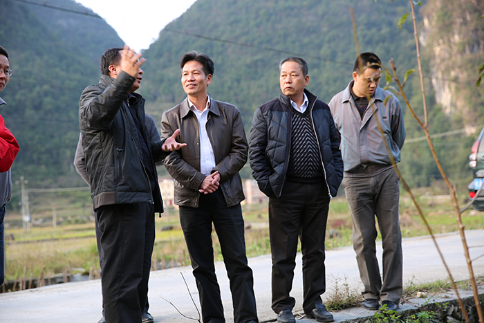 集團(tuán)公司朱堅(jiān)和董事長(zhǎng)(左三)、張友坐副書記(右一)聽取駐村”第一書記“梁義寬匯報(bào)工作。 在相堯村、豹山村、才帛村,朱堅(jiān)和董事長(zhǎng)分別與當(dāng)?shù)劓?zhèn)、村干部以及覃獻(xiàn)康、梁義寬、蔣博三位派駐農(nóng)村“第一書記”和扶貧工作隊(duì)隊(duì)員進(jìn)行親切交談,詳細(xì)詢問“第一書記”工作、生活情況,并聽取了“第一書記”關(guān)于幫扶村的黨建及村集體經(jīng)濟(jì)發(fā)展情況匯報(bào)。得知目前各駐村書記及扶貧工作隊(duì)員已經(jīng)完成精準(zhǔn)扶貧入戶摸底調(diào)查時(shí),朱堅(jiān)和董事長(zhǎng)對(duì)“第一書記”到村以來,深入調(diào)查走訪,積極幫助村里理思路、定規(guī)劃、辦實(shí)事,表示充分肯定。